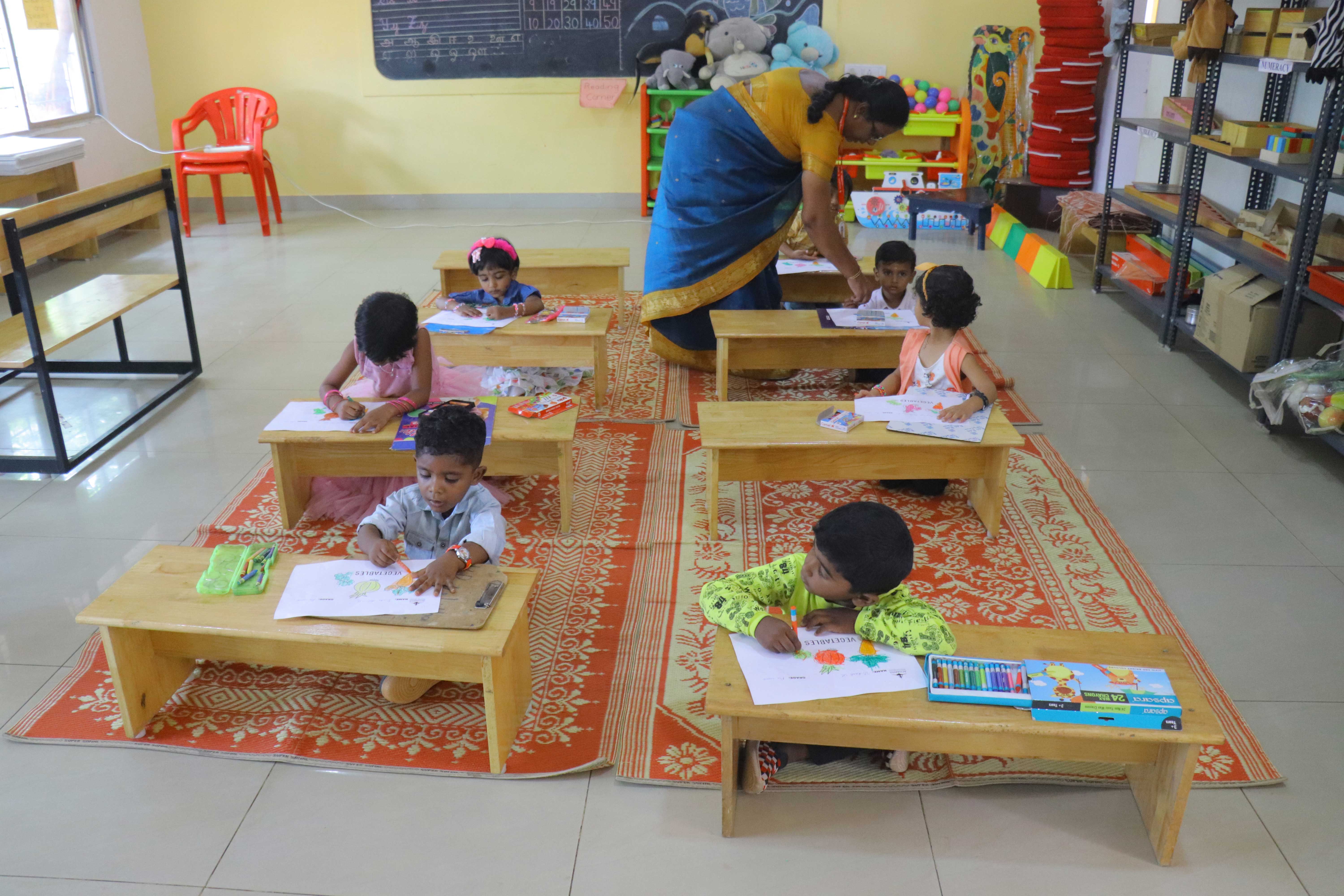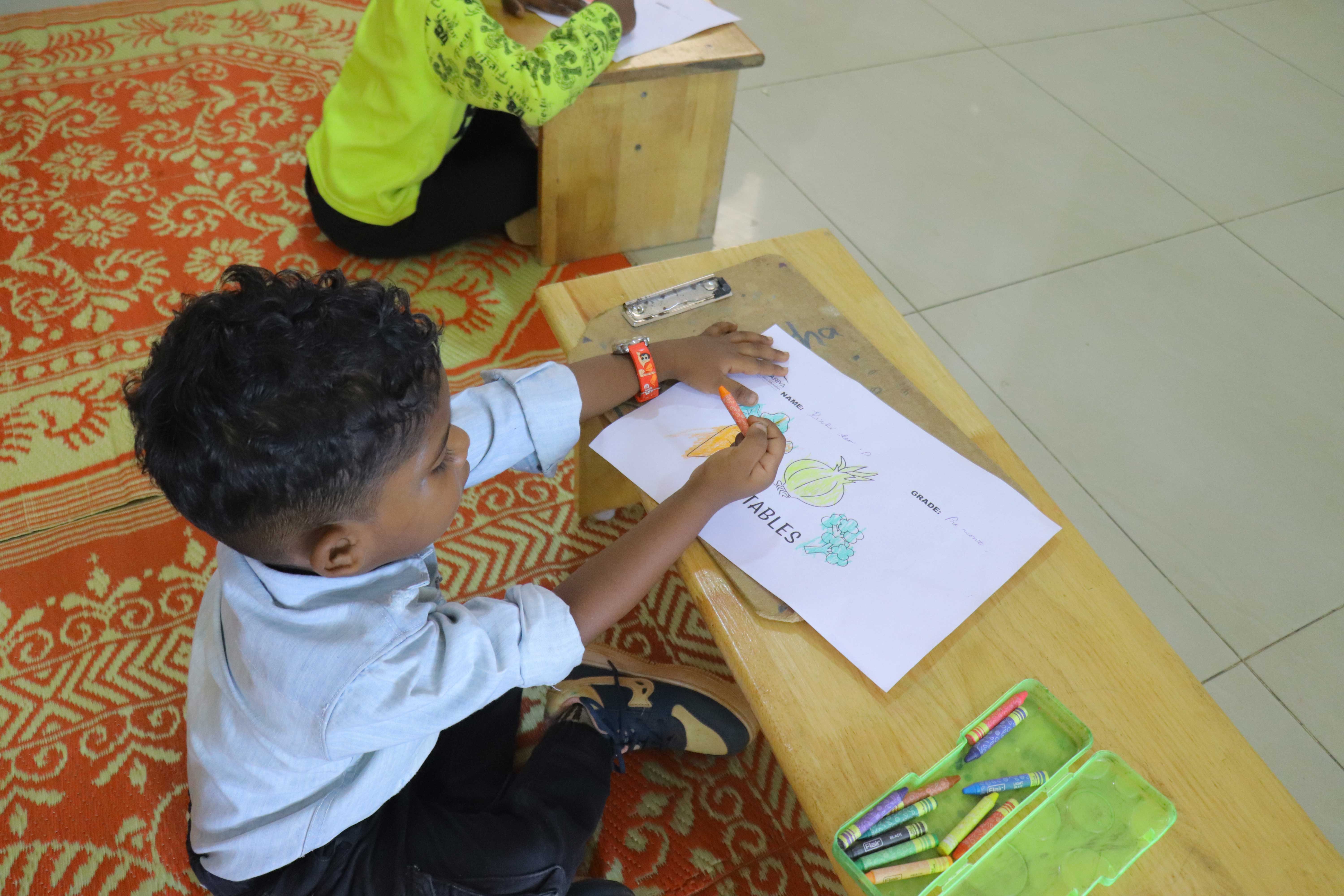 Our world is filled with colours. The motive was to make the children aware of colour, its significance and to develop fine motor skills in the students.