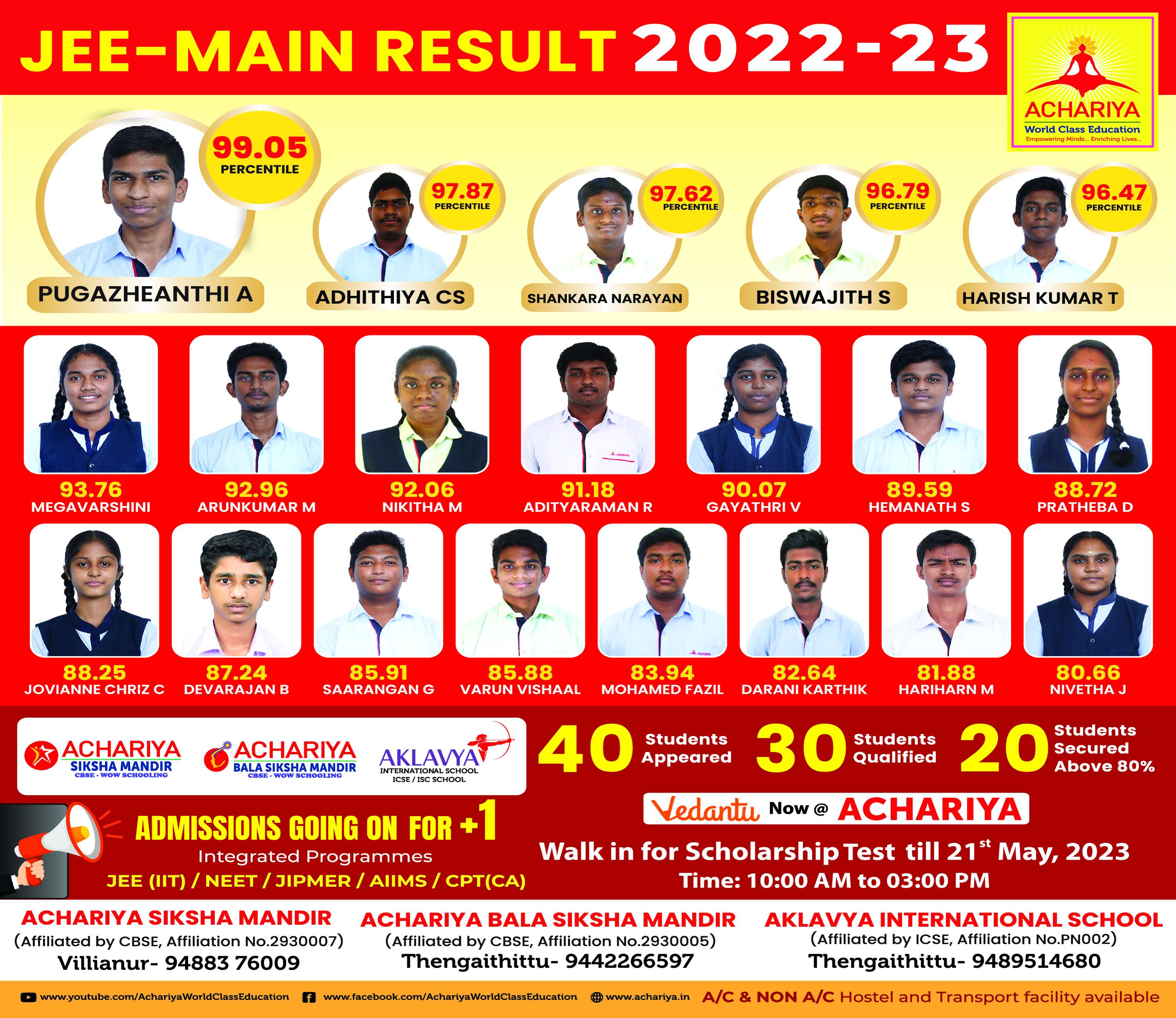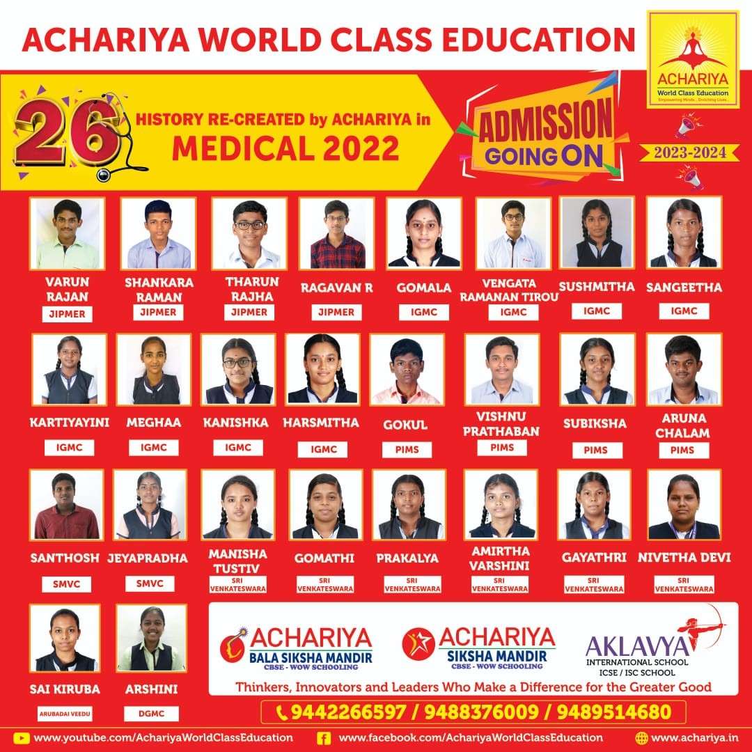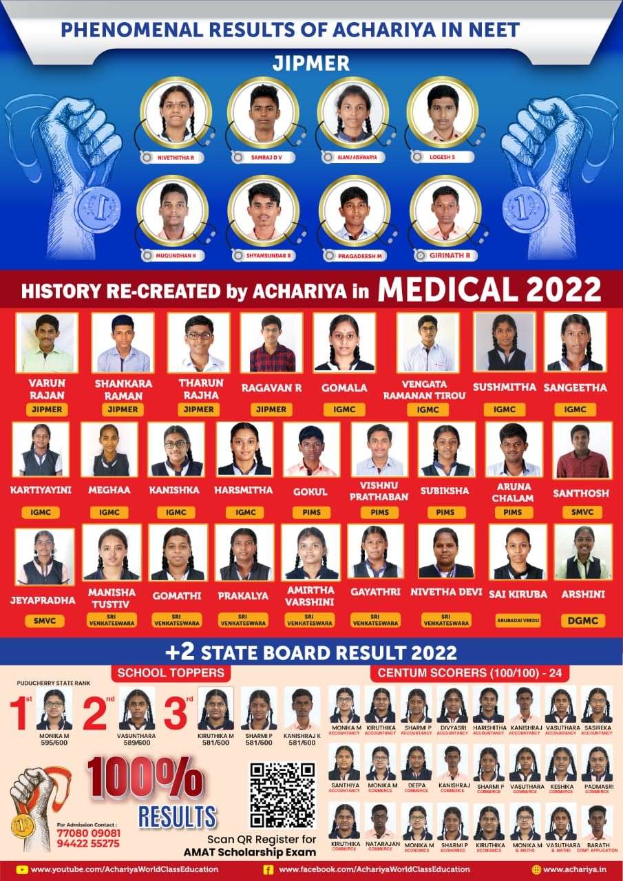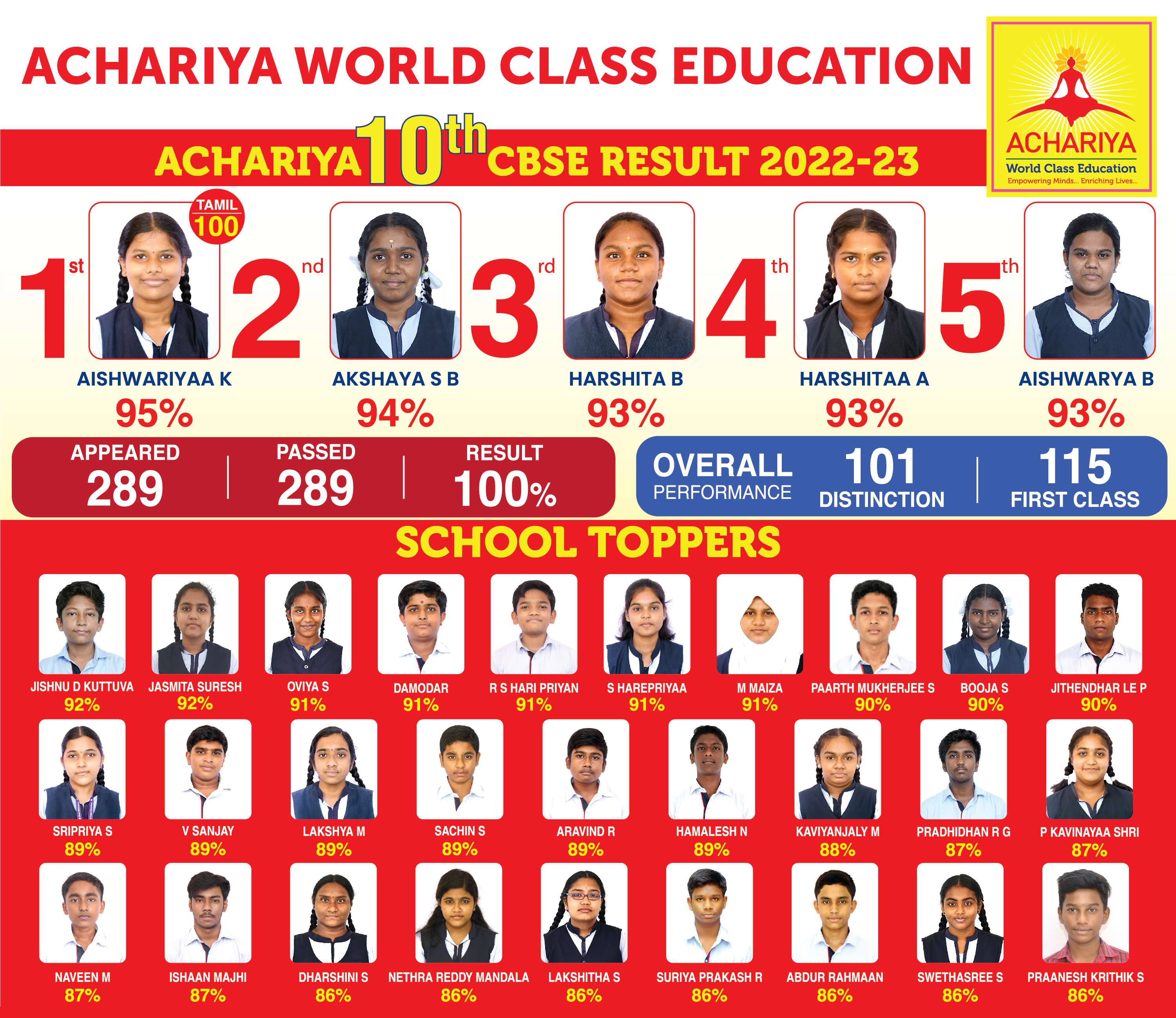 Results prove to we the backbone of any institution’s name and fame. We ACHARIYANS always deserve the honor of centum results in secondary and senior secondary exams. With the reputed appreciation from our parents, our institutions grows year by year, aiming to place ACHARIYA on the top of world.